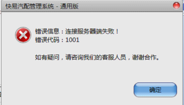 客户端登陆系统时,提示“连接服务器端失败,错误代码1001”,如下图