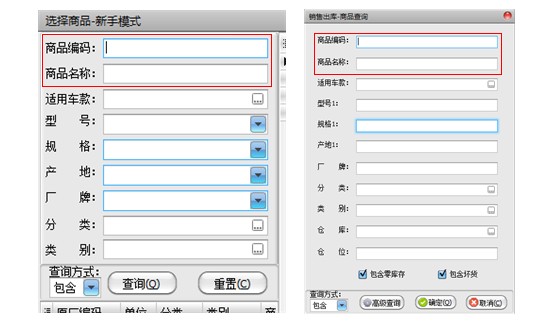 ● 为什么在两种模式的查询条件窗体中没有商品别码、商品别名的查询条件呢?