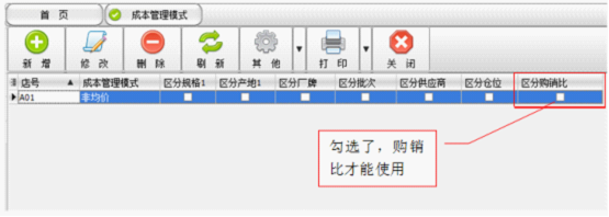 如果在“成本管理模式”中不勾选 “区分购销比”选项,那么在采购和销售中只能默认使用商品属性中的单位,而不能选择购销比。也就是说在系统中不能使用购销比,采购和销售统一使用同一个计量单位,两个计量单位之间没有差异。