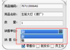 在销售中选择商品时,可以选择本次销售商品的销售单位,如下图: