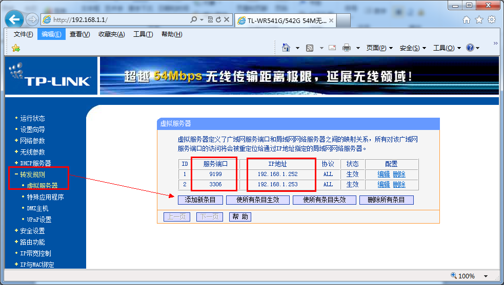 4、如果内部网络是通过PPPOE拨号上网的,则还必须在路由器中作端口映射,如下图