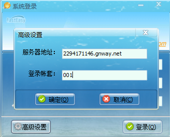 5、当服务端配置好域名解析,并且端口号作了映射后,运行客户端程序时,就可以在服务器地址填入获得的二级域名地址,如下图:
