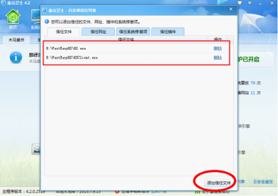 添加信任文件,建议把安装目录下面的所有EXE及DLL都添加到信任文件中。